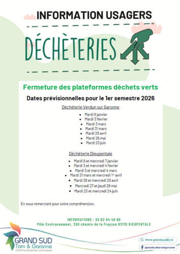 DÉCHÈTERIE : les déchèteries fermeront exceptionnellement à 16 h les mercredis 24 et 31 décembre 2025